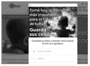 Fuente: páginas web de biobancos. Nombres de empresas fueron anonimizados.«Tomá hoy la decisión más importante para el futuro de tu hijo: guardá sus células»