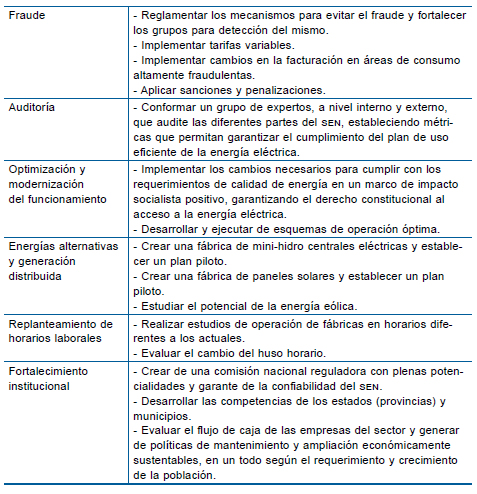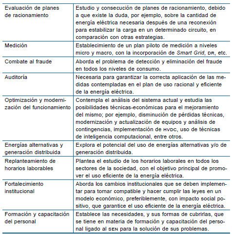 Seguidamente, se analizaron las principales anomalías que, en general, se ciernen sobre los sen, así como las condiciones a ser tomadas en cuenta para el establecimiento de las líneas de acción del mencionado plan y las medidas que cada gobierno nacional debería implementar para el uso eficiente y racional de la energía eléctrica.