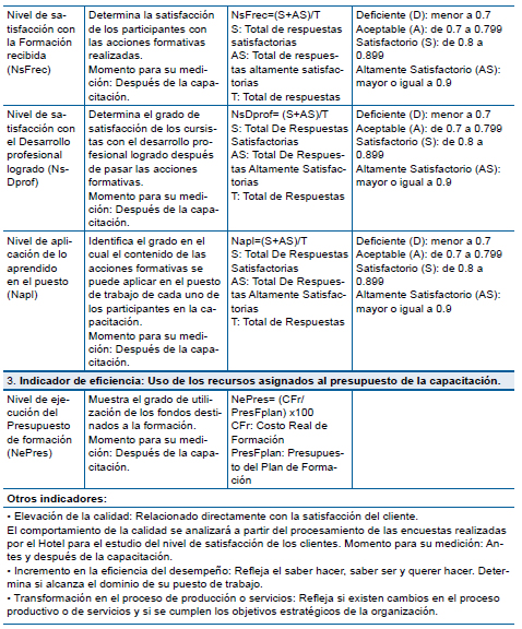 1. En el hotel se elabora anualmente el Plan de Capacitación para los directivos, se discute con ellos y se disponen los recursos necesarios; sin embargo, no se realiza una evaluación del impacto de la capacitación que reciben y tributen al desempeño de la organización.