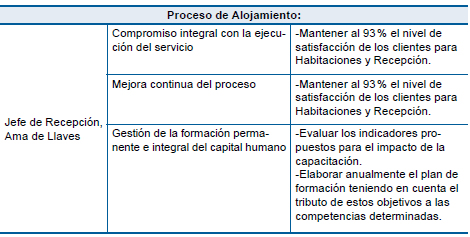 Para el incremento en la eficiencia del desempeño, se trazan objetivos a partir de la implementación de las competencias organizacionales y de los procesos esenciales del hotel en que está implicado cada directivo. El programa de desarrollo de competencias directivas que se establezca debe lograr el cumplimiento de los objetivos trazados.