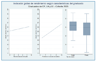 De la relación entre el rendimiento de los graduados y sus características se obtuvieron los siguientes resultados: