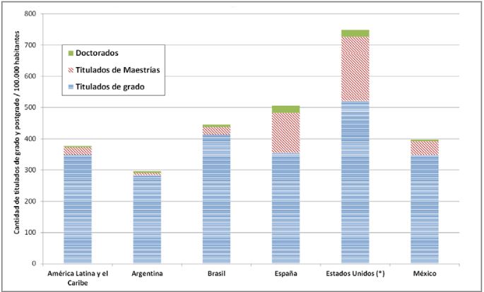 elaboración propia en base a ricyt.(*) Último año disponible con disponibilidad de información para el conjunto de los paises considerados.