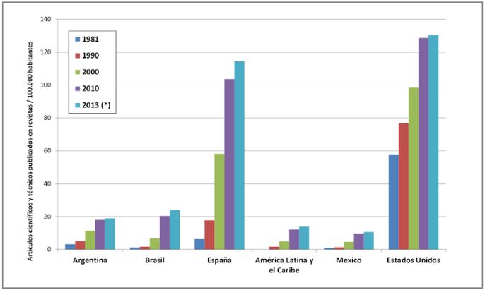 elaboración propia en base a ricyt.(*) Año 2009, último año disponible en la fuente para el caso de Estados Unidos.