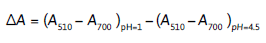 Dónde ΔA= cambio en la absorbancia, AT= concentración de antocianinas monoméricas totales (mg cianidina-3-glucósido/L); PM= masa molecular para cianidina-3-glucósido (449,2 g/mol), FD= factor de dilución, Ɛ= coeficiente de extinción molar para cianidina-3-glucósido (26900), l= longitud de paso de celda (1 cm), 1000= factor de conversión de gramos a miligramos (Giusti & Wrolstad, 2001).