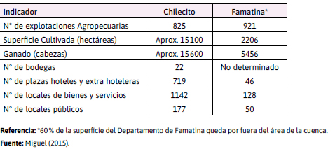 En la Tabla 1 se presentan los principales atributos respecto a la economía de los departamentos de Chilecito y Famatina.