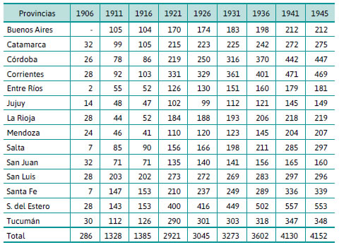 Inmediatamente después de la reglamentación de la Ley Láinez –febrero de 1906– se inició en Catamarca la creación de escuelas nacionales. En 1911 el CNE había instaurado 1.328 establecimientos en las provincias, cuyo número variaba desde 44 en La Rioja a 203 en San Luis. Diez años después, el número total de escuelas Láinez había crecido más del doble. En Corrientes, por ejemplo, pasaron de 92 a 331 (Tabla I). Este incremento se relativiza si tenemos en cuenta que en ese período cerraron en el país 320 escuelas provinciales, de las cuales 108 estaban ubicadas en Corrientes. Es decir, varios de los criterios originales de la ley no fueron respetados y, consecuencia de ello, no solo se fundaron en las ciudades, sino también se traspasaron establecimientos al CNE.8 Ricardo Machado, rector del Colegio Nacional de Río Cuarto, publicó en El Monitor de la Educación Común una nota en la que cuestionaba que en varias provincias pobres los gobiernos se habían desentendido «de la obligación constitucional de atender la instrucción primaria» y daba el ejemplo de La Rioja, con solo diecisiete escuelas provinciales y una repartición a su cargo, el Consejo General de Educación (1931: 103).