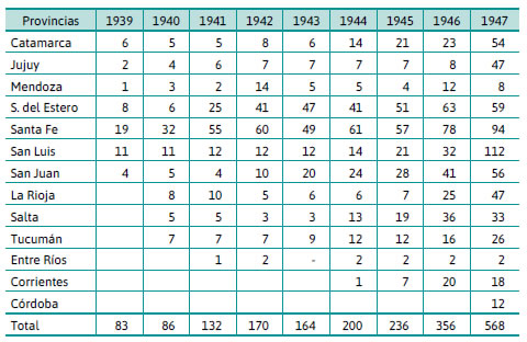 En 1939 se incorporaron en Catamarca, Jujuy, Santa Fe y San Juan. Para ese entonces, el CNE manifestaba que la creación de los grados complementarios implicaban «un paso más» en los acuerdos sobre coordinación escolar que con los gobiernos de las provincias se ha dado al respecto, ampliándose la ayuda del CNE en el sentido de favorecer el funcionamiento de los grados quinto y sexto con la facilitación de útiles y material, además de los beneficios de la ayuda escolar para los alumnos. Ahora bien, los datos del propio CNE sobre los grados complementarios dan cuenta de que en algunos casos, sobre todo en un primer momento, se trataba de creaciones que no se mantenían en el tiempo (Tabla III).