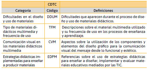 En esta oportunidad seleccionamos algunas categorías del sistema construido en función de los objetivos y alcances delimitados en este artículo (ver Tabla 2).