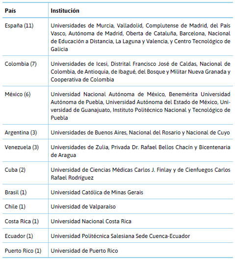 Con respecto al origen de los autores de los textos, se identificó la institución de adscripción y el país de procedencia para visualizar en dónde se localiza la mayor cantidad de investigaciones de la muestra obtenida (Tabla 2).