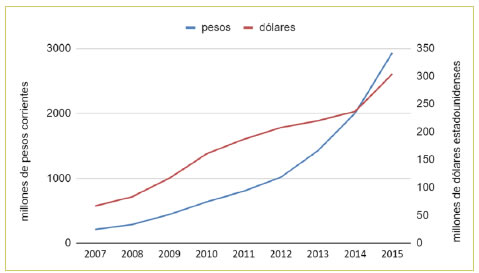 En el caso del sector nuclear, la paralización de la actividad y descapitalización del sector durante las décadas previas fue revertida a partir de la creación del Ministerio de Planificación Federal, Inversión Pública y Servicios en mayo de 2003, desde el cual se trabajó en su recuperación. En agosto de 2006, el presidente de la nación Néstor Kirchner y el ministro Julio de Vido anunciaron la reactivación del Plan Nuclear, una planificación a largo plazo en materia de desarrollo de tecnología nuclear y su aplicación con fines pacíficos (De Vido, 2006). Esta reactivación no puede desligarse de la crisis energética que se vivió en Argentina durante 2004 como consecuencia del acelerado crecimiento productivo y las políticas de privatización y desregulación que se habían promovido durante los años noventa (Vera, 2013). Con el objetivo de dar sustentabilidad a esta política, en 2009 se dictó la Ley N.º 26.566 de Actividad Nuclear y se elaboraron sucesivos planes estratégicos institucionales de la cnea. En estos planes se establecieron tres ejes de acción fundamentales: la generación eléctrica, la salud pública y la investigación y desarrollo científico-tecnológico (cnea, 2011, 2015). De manera conjunta a la reactivación, la cnea diseñó políticas de comunicación capaces de «dialogar con la comunidad y de dar visibilidad, validación social y posicionamiento a las actividades nucleares» (cnea, 2015, p. 58; Sutelman, 2013). Estos planes fueron acompañados del aumento presupuestario que se observa en el Gráfico 1, que pasó de 67 a 304 millones de dólares en concepto de presupuesto anual devengado (ejecutado) entre 2007 y 2015, respectivamente9.