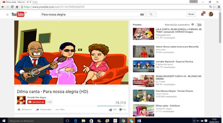 No caso específico do vídeo “Para nosso alegria” que se tornou hit no YouTube, por exemplo, as evidências de prática spammer estão no campo conteúdo que ocorre através da inclusão de links que direcionam para outros vídeos do Canal. Há também o decalque da cena do vídeo hit (versão Chaves[5], versão Simpsons[6], versão Alvim e os Esquilos[7], versão Bob Esponja[8]); no campo descrição os spammers inserem links direcionando para o seu canal e engaja divulgação de novos conteúdos e a divulgação de show, por exemplo.