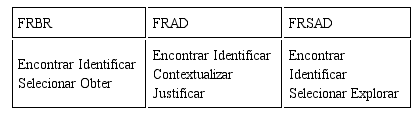 O que se percebe é que as tarefas dos usuários (quadro 3) no modelo conceitual FRBR focam o registro bibliográfico, enquanto que os FRAD e os FRSAD focam os registros de autoridade ou identidade (MACULAN, 2013).