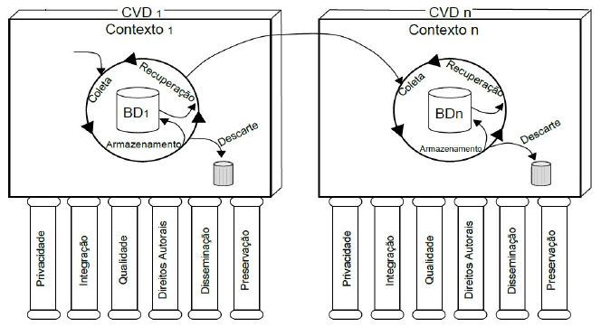 Para contextualizar a coleta de dados, este artigo utilizou o Ciclo de Vida dos Dados (CVD), modelo composto por quatro fases: Coleta, Armazenamento, Recuperação e Descarte, sobre as quais perpassam por seis fatores como: Preservação, Disseminação, Direitos Autorais, Qualidade, Integração e Privacidade (SANT’ANA, 2016).