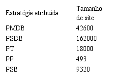 Também foi observado um fenômeno diferente no website do PP, cujo número de páginas é bem inferior comparado com os demais partidos.