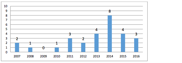 A produção científica com os termos relacionados é demonstrada no Gráfico abaixo: