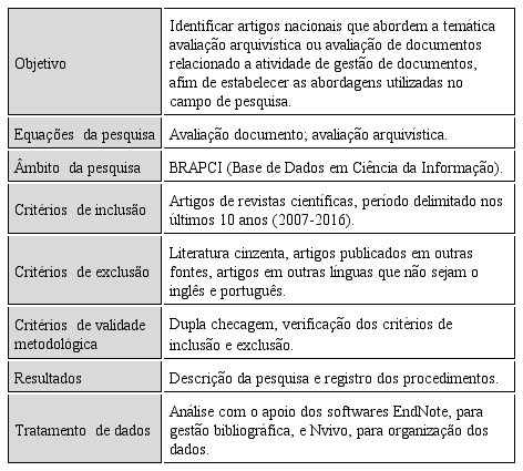 Passando para a análise da revisão sistemática, procedeu-se a pesquisa na base de dados BRAPCI, com o protocolo metodológico descrito no Quadro 1.