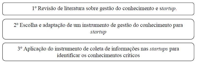 A pesquisa é considerada quali-quantitativa com o intuito de estruturar iniciativas de gestão do conhecimento voltadas para o incremento do processo de inovação em startups catarinenses, e será realizada conforme Figura 1.