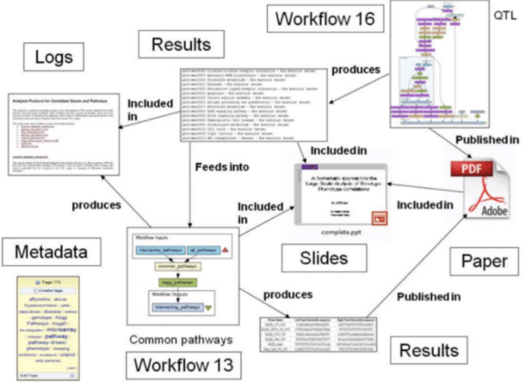 A interação da comunidade científica com os produtos auxilia na avaliação e pode ser uma maneira de garantir uma apropriada revisão. Sem a existência dessa interação, uma falta de avaliação, unida a um excesso de material suplementar, poderia comprometer a qualidade das pesquisas (POP; SALZBERG, 2015). A possibilidade de lidar com processos de trabalho situa o projeto myExperiment como exemplo de modelo de dados de partes executáveis (BARDI; MANGUI, 2014). Dessa forma também, mantém-se a semântica da pesquisa (PAGE et al., 2012) e serve como apoio do modelo semântico de publicação.