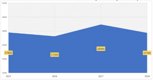 Ao distribuírem-se os dados de quantidade de autores, considerando-se o universo expandido, por ano, percebeu-se o quadro disponível na Figura 1.