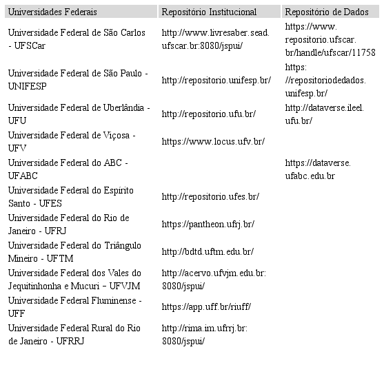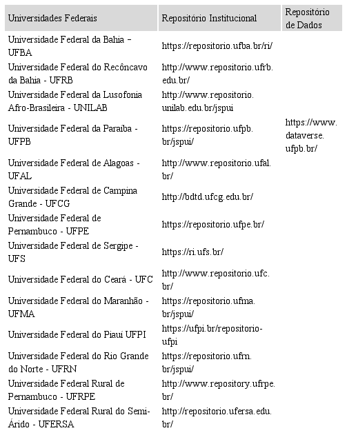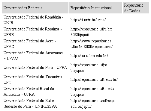 Em relação às Universidades da Região Norte, tem-se os repositórios institucionais e de dados, especificados no Quadro 2: