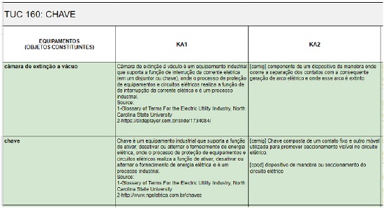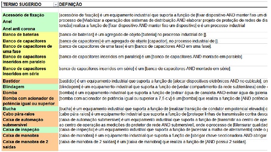 Observou-se, no decorrer do projeto, que o setor elétrico possui glossários e outros recursos sobre insumos elétricos. Os sites da ANEEL, da Eletrobrás e das distribuidoras possuem dados sobre termos especializados, às vezes organizados de forma alfabética e atrelados a funcionalidades de busca. Entretanto, muitos desses recursos são próprios para consumidores ou investidores, de forma que apresentam descrições voltadas para outros órgãos reguladores e distribuidoras. Esse formato não contribui com a clareza e a precisão necessárias a uma ontologia.