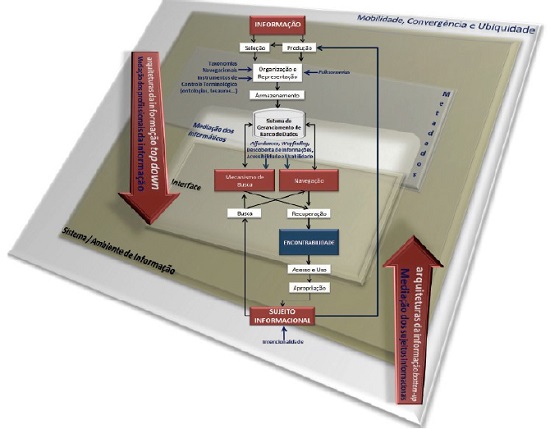Oliveira e Luvizotto (2017) compreendem que a Arquitetura da Informação Digital está sobreposta nesse contexto sócio-cognitivo. Desse modo, as Tecnologias da Informação e Comunicação são o prisma para inserção dos sujeitos sob a ótica do acesso e uso da informação e, num panorama geral, quanto melhor estruturada e arquitetada as informações nos sistemas e ambientes informacionais, melhor será a encontrabilidade da informação pelos sujeitos.