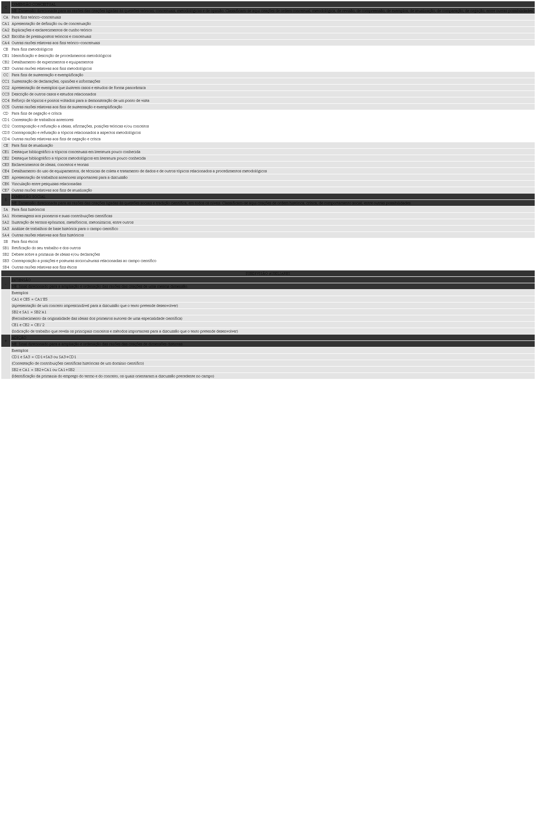Legenda: CA (Teórico-conceituais); CB (Metodológicas); CC (Sustentação e Exemplificação); CD (Negação e Crítica); CE (Atualização); SA (Históricas); SB (Éticas)