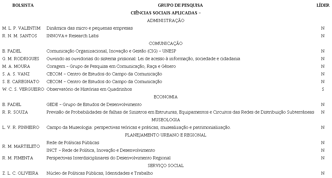 Verifica-se por meio dessa ocorrência um espaço de troca e conquista, em que há, por parte dos 13 bolsistas PQ, uma movimentação da identidade do campo disciplinar da CI entre 13 grupos de pesquisa fora da Ciência da Informação, mas dentro das Ciências Sociais Aplicadas.