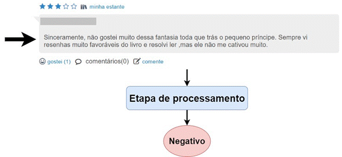 Para ilustrar esta etapa, a Figura 4 apresenta um esquema de seu funcionamento, que parte de uma pequena resenha sobre um livro, retirada da plataforma Skoob. Após ser processada pelo classificador de sentimento (Vader), é então gerado um resultado de acordo com a polaridade do sentimento obtida.