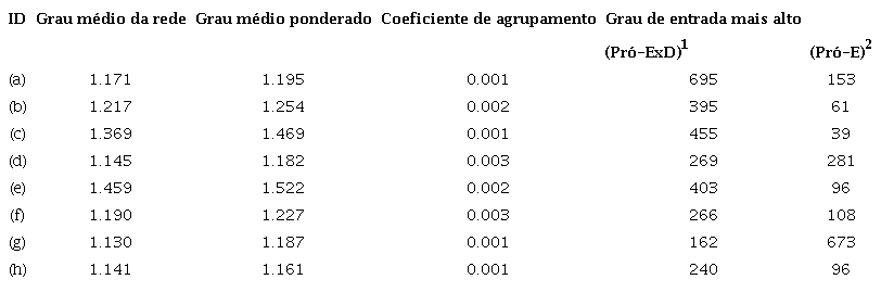 Indegree (grau de entrada): que mede o número de conexões recebidas pelo nó, permitindo a identificação de nós com maior popularidade na rede;