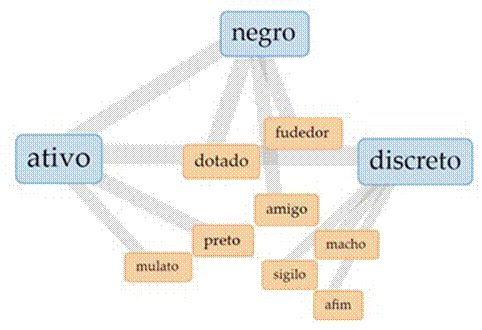 Tal compreensão pode ser vislumbrada nas Figuras 1 e 2 e na Tabela 1, os termos de maior ocorrência na amostra foram listados e sua relação com a corporeidade negra e/ou atributos da personalidade dos sujeitos que os afastam de qualquer estereótipo homossexual, reafirmando sua masculinidade, tais como: discreto, negro, ativo, preto, dotado, utilizando-se termos em conjunto ou separado, são os descritores de maior ocorrência. Este fato tem a ver com a ideologia do racismo que impregnou no imaginário social os estereótipos atrelados ao corpo negro desde o período colonial. Segundo Caneiro (2016, p.13) “[...] o racismo é um sistema de dominação, exploração e exclusão que exige a resistência sistemática dos grupos por ele oprimidos”, objetificando e tornando o sujeito negro desumanizados. Tal entendimento, repercute na colonialidade do poder, saber e do ser manifestadas em representações simbólicas de forma negativa na sociedade.