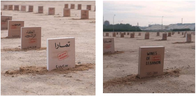 Os gestos de resistência à censura no Kuwait ganharam força em 2018 com uma série de protestos nas redes sociais, a exemplo do Twitter, com a hashtag #Banned_In_Kuwait, bem como a instalação, na Feira do Livro do Kuwait, do artista visual Mohammed Sharaf. A ação trazia aproximadamente 200 lápides que se assemelhavam ao formato de livros, onde se liam os nomes de livros proibidos e o “selo”: “proibido no Kuwait”. Ela durou poucas horas, no entanto, foi suficiente para ser registrada e circular na web, conforme Figura 1.