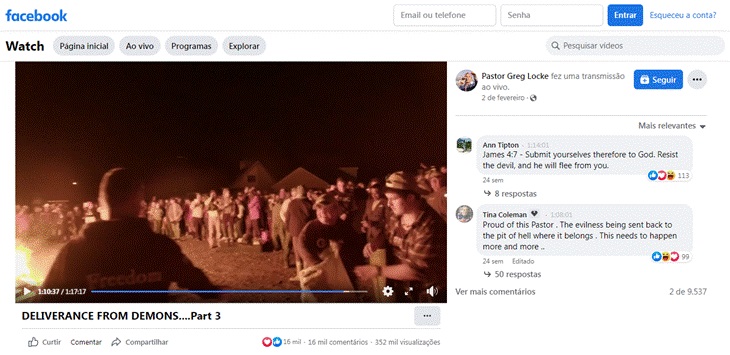 Outro caso, reportado pelo jornal The Guardian, através do jornalista Yang (2022), aborda a queima de livros no estado norte-americano do Tennessee, no qual ações em torno da censura têm se avolumado ao ponto de um pastor, Greg Locke, também teórico da conspiração pró-Trump, reunir uma multidão para a queima obras como “Harry Potter” e “Crepúsculo”, tentando parar as “influências demoníacas” que possam assombrar as “famílias tradicionais”. O evento contou com um grande público e foi transmitido ao vivo pelo Facebook, conforme Figura 2: