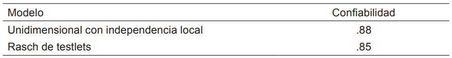 Por último, la tabla 5 presenta el coeficiente de confiabilidad estimado mediante el modelo unidimensional y el estimado con el modelo de testlets.