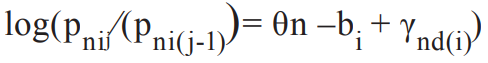 donde pnij y Pni(j-1) son las probabilidades de puntuar j y j-1 para el ítem i en la persona n, respectivamente, y es el paso j-ésimo de dificultad en el ítem i.