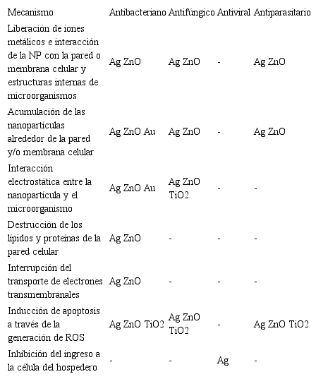 La actividad antimicrobiana depende del tamaño, la forma, la concentración, las modificaciones en su superficie y los métodos de purificación en el proceso de síntesis.