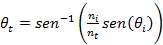 ley de Snell determina la dirección (con respecto al vector normal a la