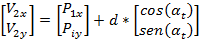 El vector entre los puntos Po y P1 es calculado mediante la diferencia relativa entre sus coordenadas paralelas como se describe en la ecuación (6).