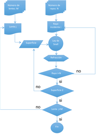Figura 8 Esquema algorítmico del sistema trazador de rayos en el esquema de lentes acoplado