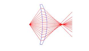 Para exhibición de la funcionalidad del esquema expuesto en este informe se han modelado tres situaciones: La primera ilustrada en la Figura 9 presenta el modelo de trazado de rayos sobre una lente menisco cóncava que es atravesada por un conjunto de rayos. En esta puede verse como no todos los rayos cruzan el eje óptico en el mismo lugar, tal como lo define la aberración esférica