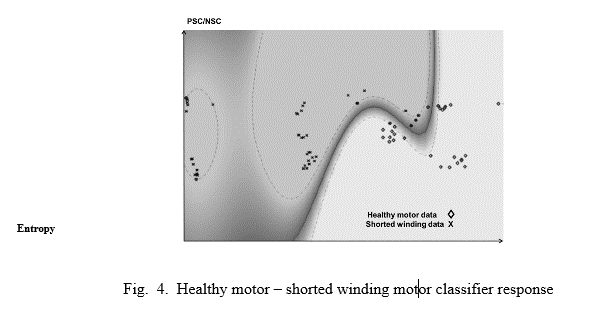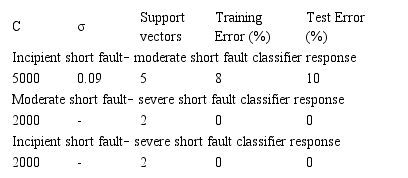This classification task was achieved using three support vector machines that classify data into one of three possibilities: 1) incipient short circuit fault 2) moderate short circuit fault, 3) severe short circuit fault. This classifier uses PSC/NSC ratio and Power Spectral Density RMS value in all machines.