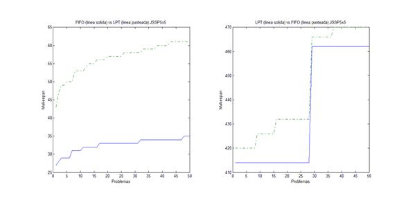 Tabla 1. Tabla 1. Definición de problemasPor su parte, las Figuras 1 a la 3, muestran el tiempo total de proceso de estos problemas, respecto a la reglas de prioridad objeto de comparación.