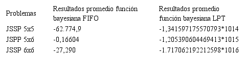 Sin embargo, la revisión bibliográfica permitio identificar pocas contribuciones asociadas a problemas de programación de la producción, lo cual sugiere que la aplicación de clasificadores bayesianos en este campo de estudio es un tópico que amerita más investigación. En particular, solo se encontró un trabajo orientado a la aplicación de técnicas bayesianas en un sistema de producción Flexible Job Shop (Sun, Lin, Wang, Gen, & Kawakami, 2015). Dicho trabajo abordó el problema a partir de un algoritmo evolucionario hibrido basado en un enjambre de partículas y una red bayesiana con el fin de minimizar el tiempo total de proceso.