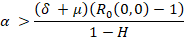 La incidencia que tiene la medida del máximo del control óptimo, sobre la dinámica de las poblaciones, como es de esperarse, genera que solo exista población susceptible y que los niveles de infectados ya sea con tratamiento o sin tratamiento antirretroviral sean nulos, al compararse esta estrategia de control con las curvas óptimas mostradas en la Figura 6, se puede observar que sería de gran ayuda para las diferentes poblaciones, pero al momento de observar qué sucede en la relación con el acceso efectivo al tratamiento antirretroviral, mostrado en la Figura 7 se observa que si muchas veces la implementación de medidas óptimas son difíciles, lo sería mucho más la del máximo de la misma.