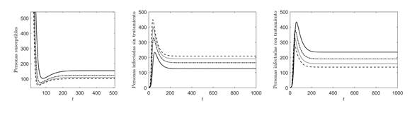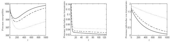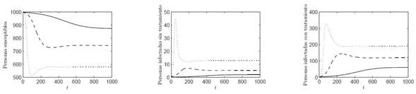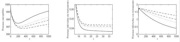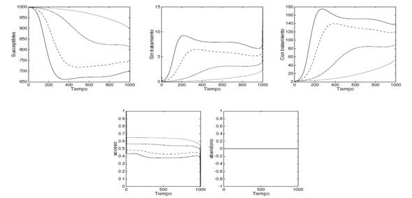 La Figura 8 ilustra el efecto que tiene las distintas estrategias subóptimas, consideras en la dinámica generada por el VIH en la población humana.