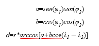 Distancia entre dos puntos geográficos relacionados en el plano esférico (ver Figura 2).