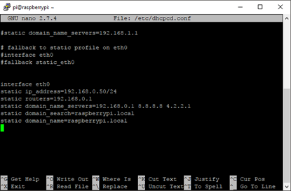 · Static domain_search y Static domain_name: Nombre con el que se encontrará a la Raspberry en la red.