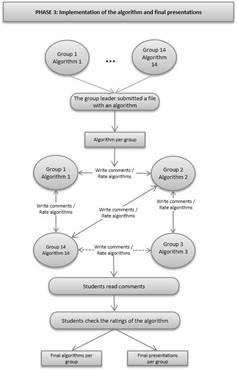 The other four groups improved their documents (group solution and final algorithms). These students elaborated a new version of the documents about the group solutions and they submitted the documents into the system. The instructor’s opinion was that this exercise allowed the students to gather documents with better quality.