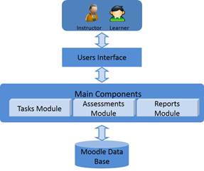 This allowed for the block to be integrated by three main components as Moodle Activity Modules: i) the Task Module, ii) the Assessment Module and iii) the Report Module. The Figure 2 shows the General Architecture of the TASystem.