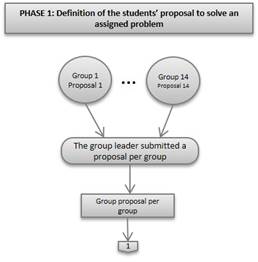 The Figure 8 presents the workflow in the second phase (small group level) of the Collaborative Lab Project. Fourteen group solutions were designed by the students in this phase.